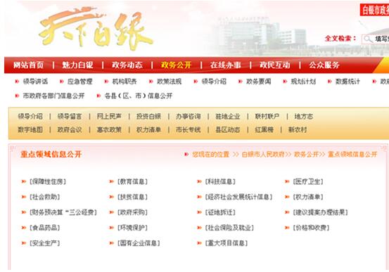 白银市2015年政府信息公开工作年度报告