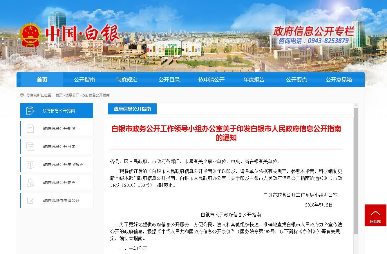 完善了政府信息公开工作考核办法和保密审查、信息澄清、依申请公开、责任追究、公共企事业单位信息公开等工作制度,进一步规范信息公开工作;紧扣省上年度《工作要点》,细化任务,压实责任,制定下发《白银市2018年政务公开工作要点》,进一步细化工作措施,明确责任分工;及时更新了市政府信息公开工作指南,并要求县区、部门单位及时落实文件精神,结合自身实际制定年度工作要点、完善相关制度,全市政府信息与公开工作制度化、规范化、科学化水平进一步提升。