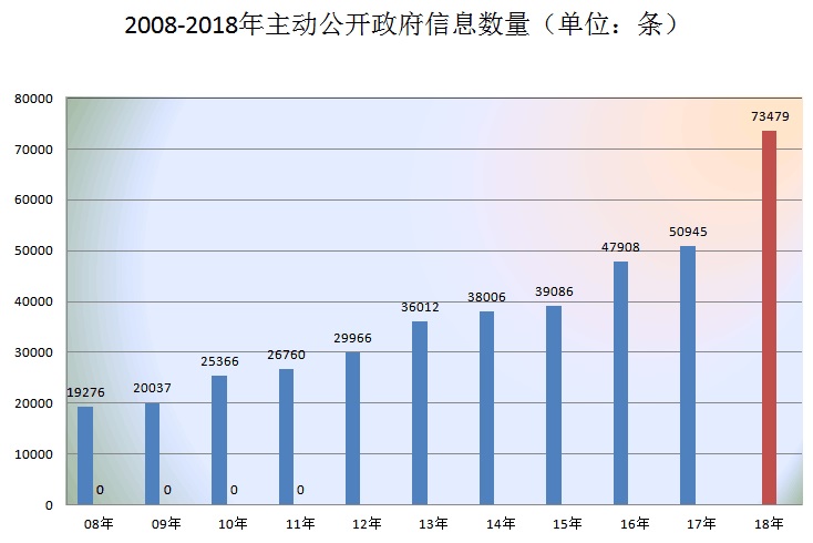 2008年以来全市累计主动公开各类信息406841条,提供服务类信息85386条,接待访问咨询总人次1404224人次(其中:现场咨询701809人次;电话咨询410452人次;网上咨询291963人次),网站专栏页面访问量13284343万人次。较好地保障了人民群众对政府工作的知情权、参与权、表达权、监督权 。