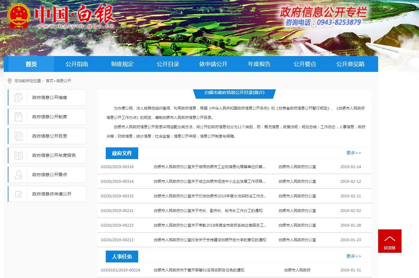 持续提升政府网站建设和管理水平,突出政府网站信息公开功能,通过购买第三方软件监测服务,对市政府门户网站栏目及内容进行适时监测。印发《关于分解落实市政府门户网站栏目内容维护责任的通知》和《市政府办公室负责市政府门户网站有关栏目内部责任分解表》,对市政府门户网站各栏目的建设维护工作进行细化,实现了责任明确到单位、分解到科室、压实到人员,确保信息发布及时准确,市政府门户网站全年共发布各类信息13900余条。12月底,采取政府购买服务的方式,将白银市政府门户网站迁移到电信政务云部署,迁移后网站的存储能力、访问速度、稳定性的到大幅提高。在市县区政府门户网站、市级部门单位网站设置了“政府信息公开专栏”、 “依申请公开”栏目,及时发布各类政府信息,有效提升了政府信息公开、回应关切和便民服务水平。 2、政府公报。