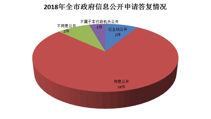(二)申请办理情况。23件申请全部依法按期答复(其中属于“已主动公开”的2件、“同意公开”18件、“不同意公开”2件、“不属于本行政机关公开”1件)。