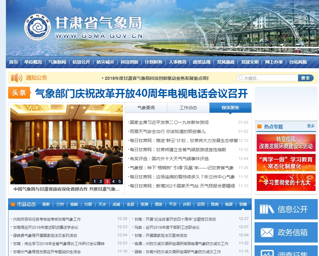 3.主要通过政务服务网、政府网站、甘肃省气象局门户网站、甘肃省气象局综合信息管理系统等网站等方式开展政府信息公开工作。一是在部门门户网站做好政务公开工作,推进重点领域信息公开。二是按照省局统一要求,强化气象预警及应对突发事件信息发布。三是按照市财政局要求在政府网站公开了2018年财政预算和“三公”经费预算明细表等 三、政府信息依申请公开办理情况 2018年度我局未收到公众依申请公开信息的要求,也没有不予公开的政府信息。 四、政府信息公开的收费及减免情况 我局对政府信息公开没有收取任何费用。 五、因政府信息公开申请行政复议、提起行政诉讼和投诉情况 年内我局没有发生因违反有关政府信息公开工作规定而出现投诉、复议、诉讼等情况。 六、政府信息公开工作存在的主要问题及改进措施 存在的主要问题和困难:与上级的要求和公众的需求还存在一些差距,公开内容的及时性、全面性以及公开形式的便民性等方面需要在今后工作中改进加强。 具体的解决办法和改进措施:2019年,进一步落实责任,细化措施,抓好整改,严格按照中央、省市有关政务公开工作的部署要求,进一步拓展覆盖面,加大网上公开力度,接受全社会的监督。一是结合市政府政务信息公开工作要求,进一步加强组织领导,提高思想认识,不断改进工作作风和方式方法。二是进一步加强主动公开意识,搞好政务公开评议,提高政务公开水平。三是进一步加强局内部各职能科室、相关单位间的沟通协调,确保政务信息公开各项工作落到实处。四是加强督促检查,规范政务公开资料管理,进一步完善细化政务公开项目和内容,增强政务公开工作的针对性和有效性。 |