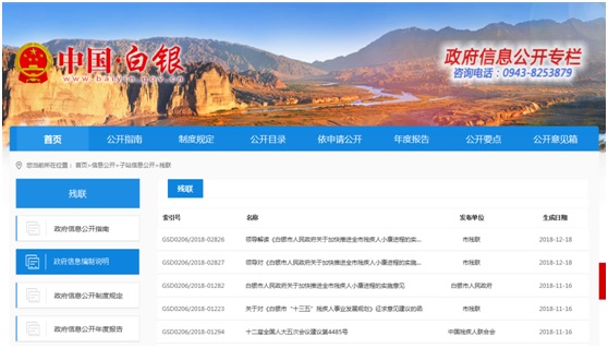 (三)主动公开政府信息的形式。通过白银市门户网站发布信息,及时关注新出台的各项法律法规及政策文件,并在网站内及时推送并进行相关解读。 (四)开展政策解读工作情况。2018年市残联多次解读相关政策和法律法规。重点解读了《国务院关于印发“十三五”加快残疾人小康进程规划纲要的通知》等内容,帮助残疾人群众和社会各界准确解读理解政策。