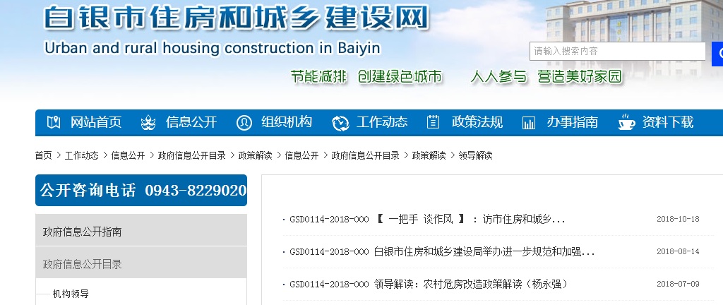根据本单位工作实际,按照《条例》,省市2018年政务公开工作要点等要求,对全年政府信息公开工作情况进行总结。内容应包括:本单位和所属相关单位2018年政府信息公开工作基本情况,主要亮点和成效;公开制度建设情况,工作组织、机构、人员情况,工作经费投入情况;公开渠道建设和畅通情况等。 二、主动公开政府信息的情况 (一)2018年,我局主动公开信息445条,历年主动公开信息1020条。 (二)主动公开政府信息的主要类别:公开了建设行政审批事项的执法依据、办事流程、办结时限、所需资料,各类规范性文件,工作动态信息,局机关的管理职能及其调整、变动情况方面的信息,包括局机关管理职能、内设机构和局属单位、班子领导等信息。 (三)我局信息公开的形式主要以白银市政府网站(http://www.baiyin.gov.cn)及单位门户网站(白银市住房和城乡建设网,网址:http://www.gsbyzj.gov.cn/)。 (四)开展政策解读工作情况:2018年我局发布解读8条,一把手解读3条,其他5条转发。