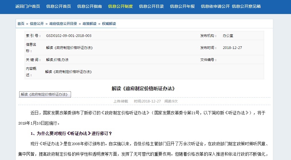 加强政策解读工作,公开解读信息14条,为了能让群众听得懂,注重运用数字化、图表图解等方式,深入浅出地把政策解读精准投递到每一个需要的主体。主要通过转载国家发改委等权威部门的网站政策解读信息,来让群众看的清,听的懂,明情况。如在委门户网站转发了国家发改委进一步缩小政府定价范围 强化社会监督解读视频,解读国家发展改革委《关于进一步加强垄断行业价格监管的意见》等。2018年,单位主要领导解读“放管服”改革工作、国家0乡村振兴战略实施意见等文件三次。 (五)回应舆情关切情况。网络科技的飞速发展,对政务公开提出了更高更严格的要求。市发展改革委能积极建立健全各项管理机制,回应社会关切内容。如果只有参与而没有反馈,就会降低群众的信任感、积极性。我委能积极健全政务舆情收集、研判、处置和回应机制,加强重大政务舆情回应督办工作,把握群众的关注点、兴奋点,及时回应反馈,既是尊重群众,也能鼓励群众继续参与。 (六)省市2018年政务公开工作要点中本单位所涉及内容的部署、贯彻和落实情况。认真落实各项改革措施,深化行政审批制度改革,动态调整权责清单,同步更新维护政务服务网,梳理完成群众和企业到政府办事事项指导目录26项,修订完成标准化服务指南52项,并及时发布在白银政府服务网上。在委门户网站的信息公开栏目下开设 “办事服务”专栏,发布了行政许可事项办理流程图等办事指南,为行政审批信息公开提供网络平台,实现了“四张清单一张网”在网上的阳光晒权。截止12月,在我委门户网站政府信息专栏上传133条政策、法规、制度信息。大力推行“网上审批”,在市发改委政务服务中心窗口增设业务总指导,配置申报专用电脑,编制项目申报指南,安排申报指导人员,公开申报咨询电话,实现了现场申报、专人指导、即时预审、即时生成项目代码等一条龙申报服务,实现了所有审批事项全部网上办理、审核,实现投资项目网上受理、办理、监管“一条龙”服务。截止12月,2018年实现了全市投资项目在线审批监管平台省市县全面贯通运行,全年共受理事项140件,已办结事项140件,办结率100%。同时,对转交科室办理的行政审批事项,全部实行依申请公开制,自觉接受社会各界监督。 (七)重点领域政府信息公开情况。2018年,我委在门户网站及市政府门户网站共计上传重点领域政府信息68条。其中重大项目建设信息13条,主要是及时公开列为省市重大项目的审批、备案和核准及项目建设情况;价格收费类信息23条,主要围绕市场价格调控和民生价格监管,及时公开群众关心关注的信息。在委门户网站转发了最新的甘肃省定价目录。公开12358价格举报电话,及时公布我市主要商品价格变动情况分析、农产品成本调查等事关群众生产生活的价格信息。对涉及群众利益的成品油价格、高校收费标准、旅游景区门票价格、物业服务和建设项目收费管理等文件,都在第一时间进行转载公开;信用信息7条,主要是依托省级公共信用信息平台建成白银市公共信用信息共享平台和“信用白银”网站并运行。发展新产业、培训新动能工作信息5条,主要是公开我市开展城市转型升级,发新产业方面的信息。 三、政府信息依申请公开办理情况 (一)受理申请的数量。全力保障申请渠道的畅通,在门户网站搭建了依申请公开政府信息通道,所有符合条件的社会公众均可在我委门户网站下载《依申请公开信息申请表》,并将申请表通过信函邮寄我委,也可在委门户网站上在线申请。 (二)对申请的办理情况。2018年全年未收到依申请公开事项。 (三)“不予公开”的政府信息涉及的主要内容及不予公开原因。不予公开的政府信息涉及的主要内容是部分文件公开后可能危及国家安全、公共安全、经济安全和社会稳定的以及有关主管部门或者同级保密工作部门依法确定为不公开的,如政法基础设施项目等。 四、政府信息公开的收费及减免情况 2018年,我委政府信息公开工作中没有发生相关收费和减免情况。 五、因政府信息公开申请行政复议、提起行政诉讼的情况 2018年,我委没有发生针对本部门有关政府信息公开事项的行政复议、诉讼和申诉情况。 (一)工作中存在的主要问题和困难。一是公开内容与公众需求存在较大差距;二是政府信息公开缺乏专业人才支撑;三是保密审查机制不完善;四是政府信息公开网站建设不完善。 (二)具体的解决办法和改进措施。针对存在的问题,市发展改革委将按照国家、省、市政府部署要求,强化服务意识,落实工作责任,及时准确公开,共享政府信息资源。重点抓好以下几个方面:一是加强组织领导,提高大家积极公开政府信息的认知度,将政府信息公开工作切实落实到常态化工作中,进一步抓紧抓好。二是扎实做好各级政府信息公开要点的执行。三是加强宣传,通过各种媒体和网站对政府信息公开重点工作加大宣传力度,对重要事件的发布要及时、公开、透明。四是强化检查考核,建立健全政府信息公开工作考评机制,委办公室将定期组织人员检查督查,按月发布执行情况,掌握工作进度,督促政务公开工作有序开展。五是积极与上级部门的沟通协调,提高政府信息公开工作的质量。 六、需要说明的其他事项