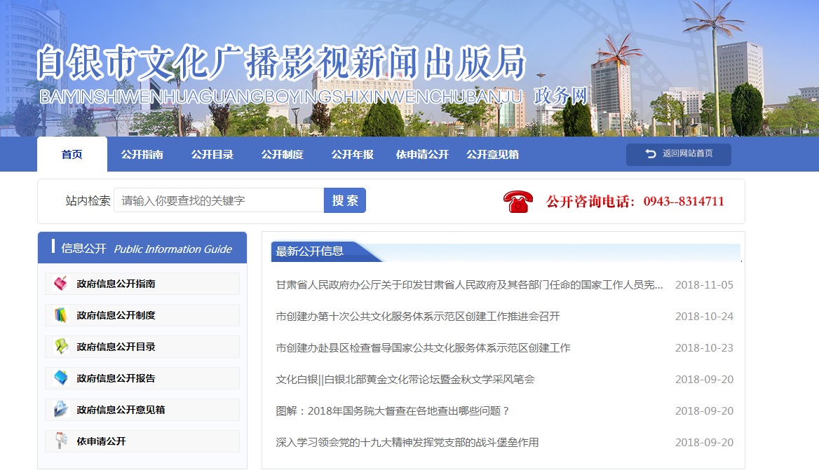一是网站公开。做到局网站和市政府信息公开平台同步、统一公开信息。二是窗口公开。推进市文广新系统行政许可事项实现一个窗口办理、一次性告知、一条龙服务,做到规范透明、便捷高效,最大限度地方便企业和群众。三是互动公开。通过调查、会商、会审、专家咨询等互动形式,与群众、企业、专家学者沟通,广泛听取意见,推进科学决策、民主决策。同时,还利用甘肃政务网政民互动平台,及时解答网民咨询和网民留言。四是媒体公开。充分利用电视、广播、报刊等传媒,全面公开全市文广新系统信息。发挥新闻媒体的舆论监督作用,完善新闻定期发布制度,及时发布公众关注的信息。五是特色公开。依托白银市创建第三批国家公共文化服务体系示范区,创办《白银文化》报、开设《文化白银》大型电视专题栏目、开办《白银公共文化》微信平台、编发创建国家公共文化服务体系示范区工作简报,全方位宣传白银文化、文物、广播影视、新闻出版工作。同时,充分发挥文广新系统资源优势,在市图书馆设立了政府信息公开查阅点,面向社会公众免费开放。六是基层走访。局领导经常利用基层走访、座谈会和个别谈话等形式广泛征求意见,听取群众呼声,提高工作水平。