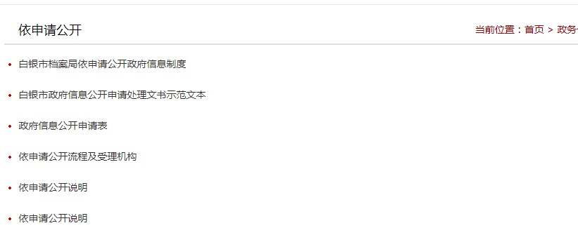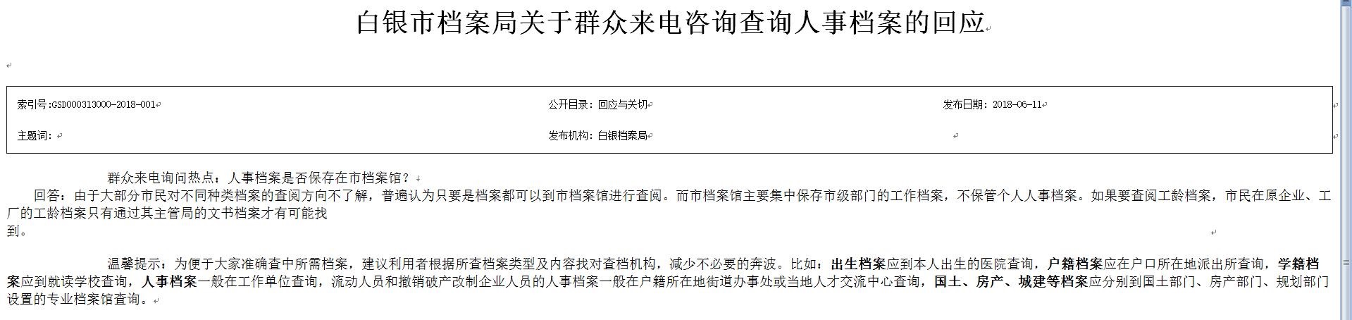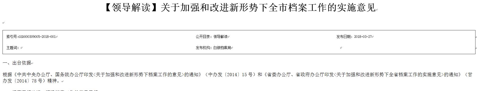 (三)主动公开政府信息的形式,包括白银档案信息网、甘肃档案信息网、现行文件中心。