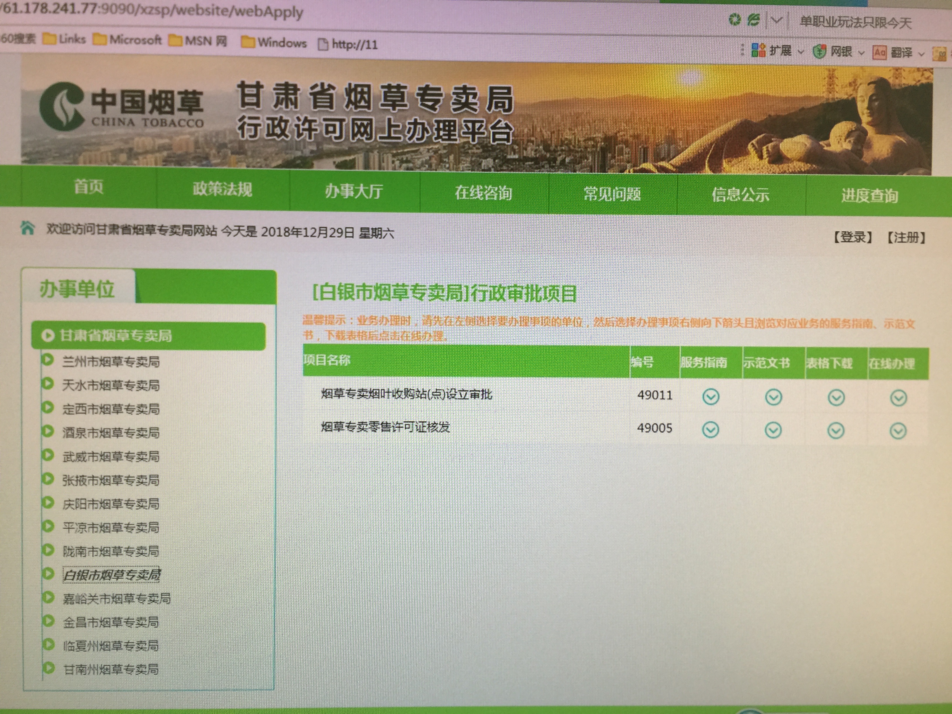 三是及时更新网站内容,保证政务公开工作正常运行。根据政务公开工作新情况和新要求,局党组高度重视,主管领导亲自安排部署,理顺了工作关系,强化了全局公开工作组织、信息发布把关和检查督导考核,保证了政务公开工作有序推进。对重要政务公开事项一经发布及时更新及时公示,政务公开的时效性、互动性、影响力进一步扩大。四是拓宽公开渠道和形式。除在白银烟草网站公开信息外,我局还通过甘肃省烟草专卖局行政许可网上办理平台公开各类信息,包括涉及烟草专卖的法律、法规、规章及相关制度,各类行政许可事项办理程序和服务指南,所有行政许可事项申请、受理、审查、决定等办理全过程信息,相对人可随时查询许可事项办理进度并进行监督。另外,建立了“白银市烟草专卖局”微信公众号,发布烟草专卖法律法规、行政许可事项办理途径与方式、常见涉烟违法行为、卷烟真伪鉴别知识和烟草举报电话等信息。