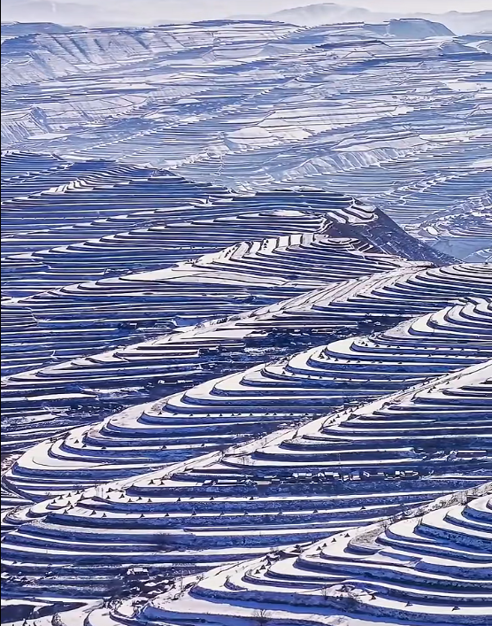 会宁梯田 雪落陇中 塬起金波