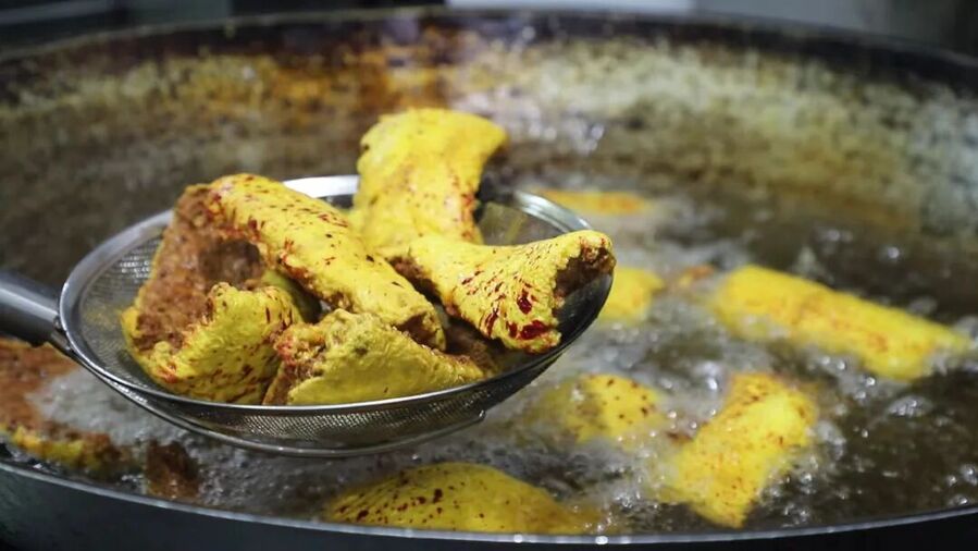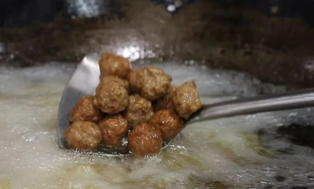 五花肉剁上千刀,直到肉质起胶——这便是“千刀酥”的由来。切块下锅炸至金黄,外酥里嫩,干吃是零嘴,炖汤是抢手货。一旁的丸子圆滚滚,藏着“团团圆圆”的好彩头。这一炸,炸出的是日子的红火,更是游子归家的信号。